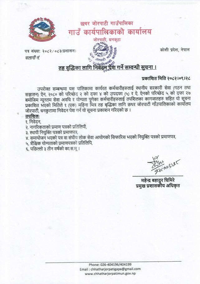 तह वृद्धिका लागि निवेदन पेश गर्ने सम्बन्धी सूचना ।