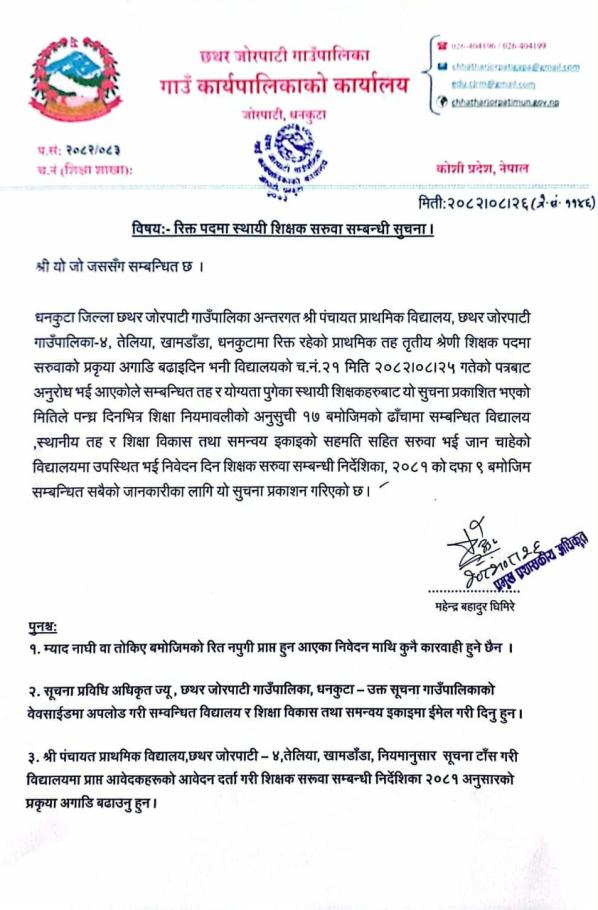 रिक्त पदमा स्थायी शिक्षक सरुवा सम्ब्नधी सूचना ।