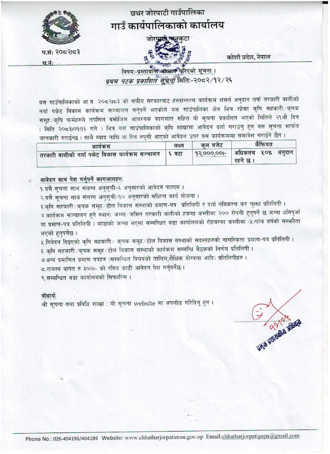 छथर जोरपाटी गाउँपालिकाको निति तथा कार्यक्रम आ.व २०८२/०८३
