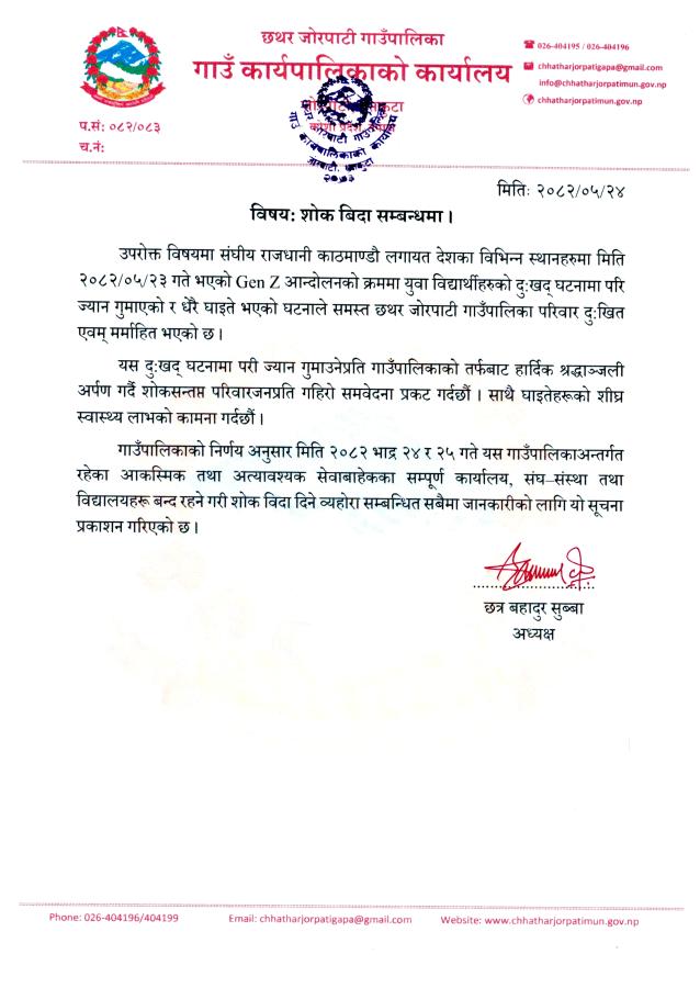 छथर जोरपाटी गाउँपालिकाको निति तथा कार्यक्रम आ.व २०८२/०८३