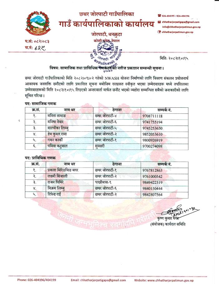 सामाजिक तथा प्राविधिक गणकहरुको नतिजा प्रकाशन सम्बन्धी सूचना ।