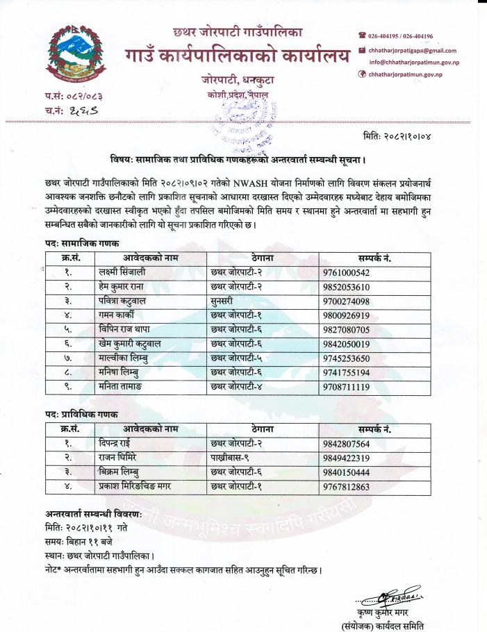 सामाजिक तथा प्राविधिक गणकहरूको अन्तरवार्ता सम्बन्धी सूचना ।