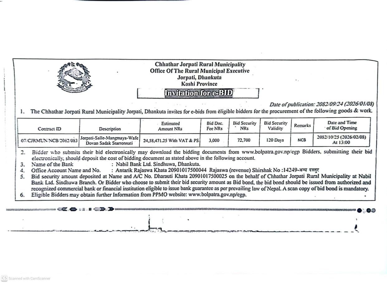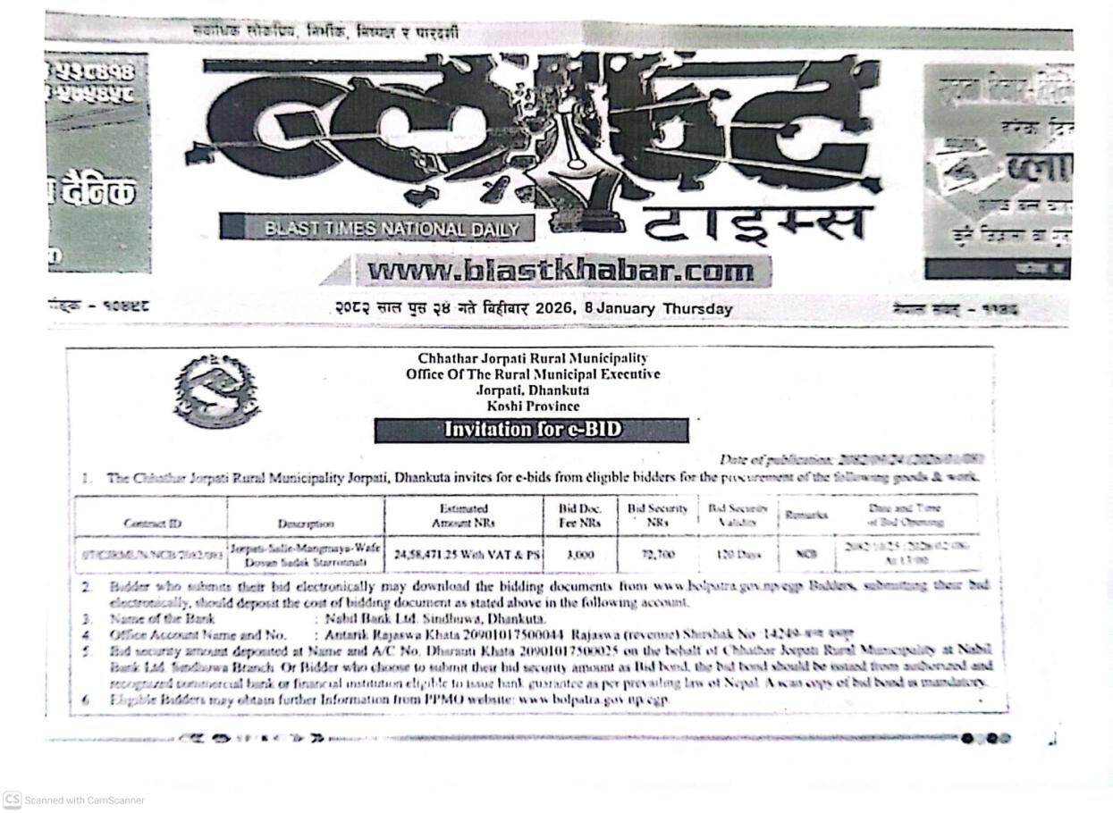 सार्वजनिक खरिद/बोलपत्र सूचना