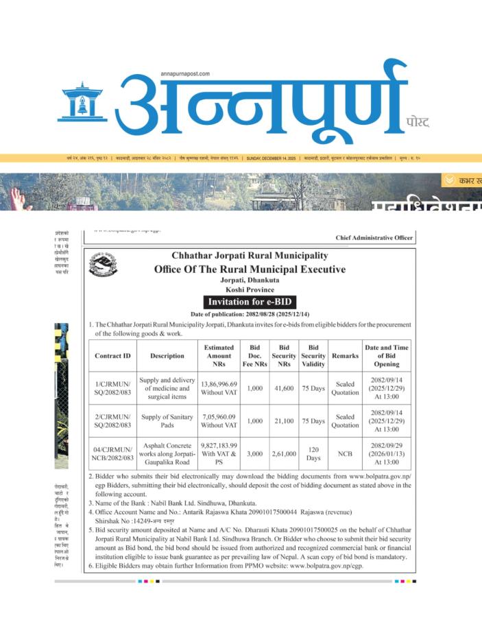 सार्वजनिक खरिद/बोलपत्र सूचना